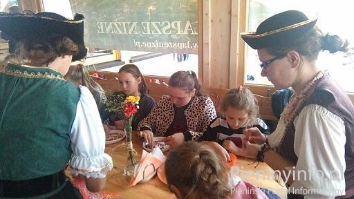 Organizatorzy pamiętali jednak i o cielesnych potrzebach swoich małych i większych piratów, dlatego na sali, co rusz pojawiały się kolejne przysmaki. Dzięki uprzejmości cukierni Państwa Kiedziuch Ciasteczka z Łapsz na sali pojawiły się pyszne babeczki, które dzieci same dekorowały i przyozdabiały, by ostatecznie je zjeść! Dla tych, którym pośród konkursowych emocji i zabaw zaburczało w brzuszkach posiłki w postaci ciepłego gulaszu, kanapek, domowego jabłecznika a także grillowanej kiełbaski zapewnili: Zasadnicza Szkoła Zawodowa z Niedzicy pod okiem Pani Janiny Schlegel oraz Pani Ewelina Płachta-Krupa i Państwo Anna i Tomasz Dziurdzikowie Zajazd Czorsztyński Maniowy.