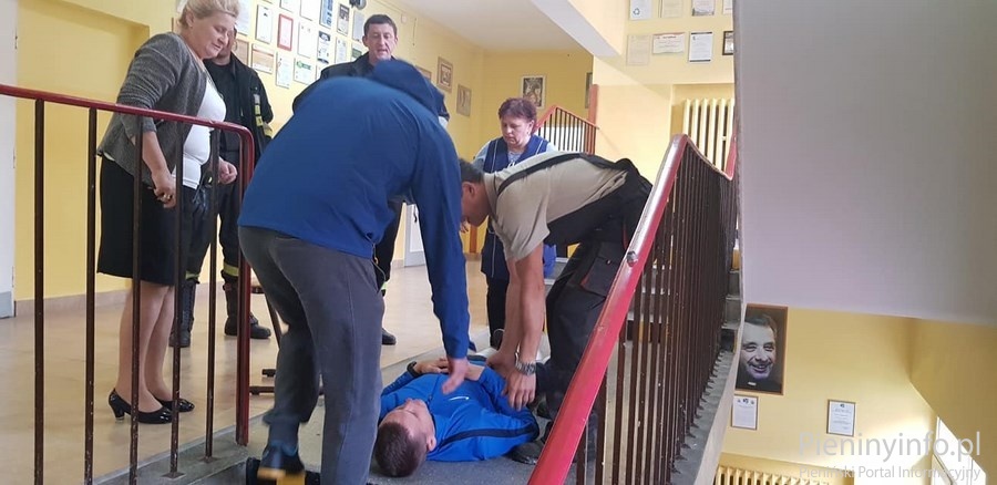 Dokonano symulacji omdlenia i udzielenia pierwszej pomocy. Społeczność szkoły uczestniczyła w zbiórce, w czasie której pani dyrektor Anna Szczepaniak składała raport kapitanowi straży. Następnie przypomniane zostały najważniejsze zasady postępowania podczas takich działań. W ewakuacji brało udział 216 obecnych uczniów oraz pracownicy placówki. Całość przebiegała właściwie pod względem tempa i organizacji. Składamy serdeczne podziękowania pani prezes OSP w Szczawnicy Monice Mastalskiej, panu kpt. Rafałowi Zachwiei oraz zastępowi strażaków za profesjonalizm i poświęcony czas, na działania mające służyć bezpieczeństwu naszej szkoły.
