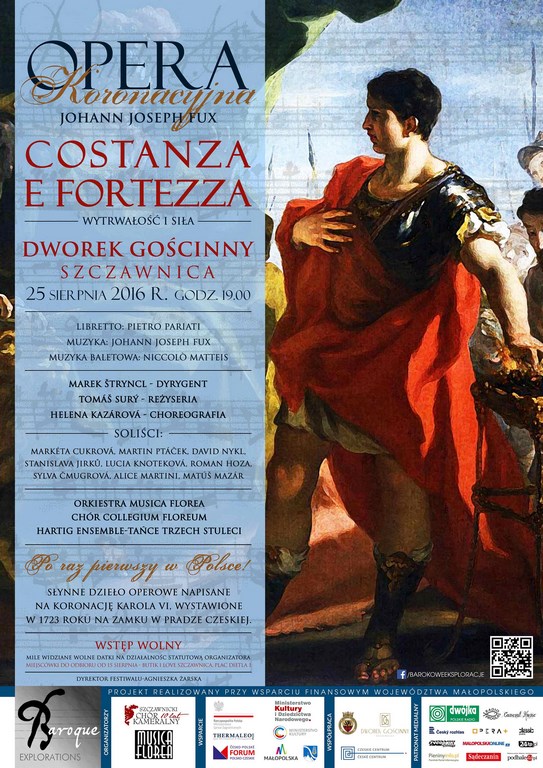 Już wkrótce nadarzy się wyjątkowa okazja, aby zobaczyć w Polsce najsłynniejsze dzieło Johanna Josepha Fuxa, operę „Costanza e fortezza”, napisaną na koronację Karola VI Habsburga w Pradze czeskiej. Dworek Gościnny w Szczawnicy 25 sierpnia 2016 roku o godzinie 19.00.