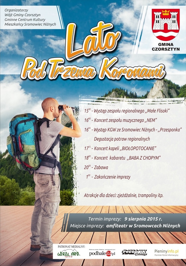 W niedzielę 9. sierpnia zapraszamy do Sromowiec Niżnych, gdzie w amfiteatrze wystąpią regionalne zespoły Małe Flisoki, Białopotocanie, będzie też kabaret Baba z Chopym a Koło Gospodyń Wiejskich przedstawi "Przesponkę".