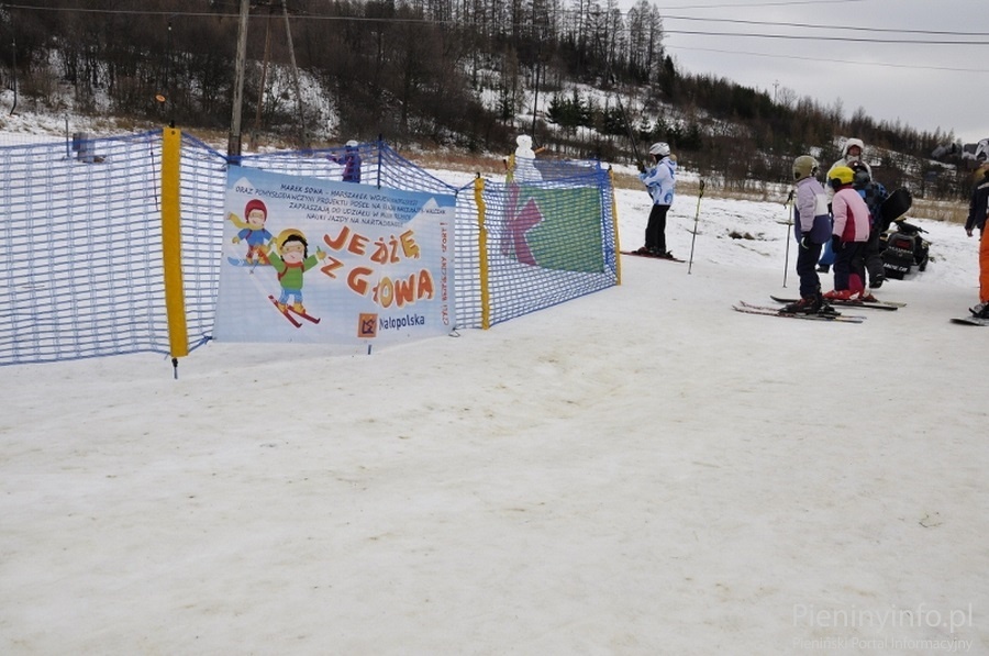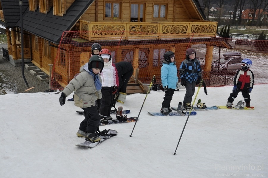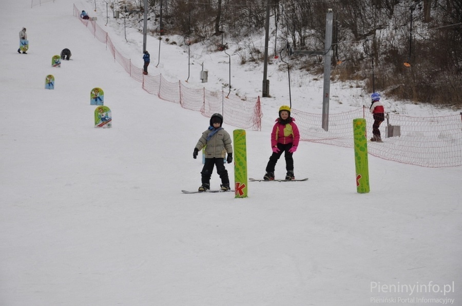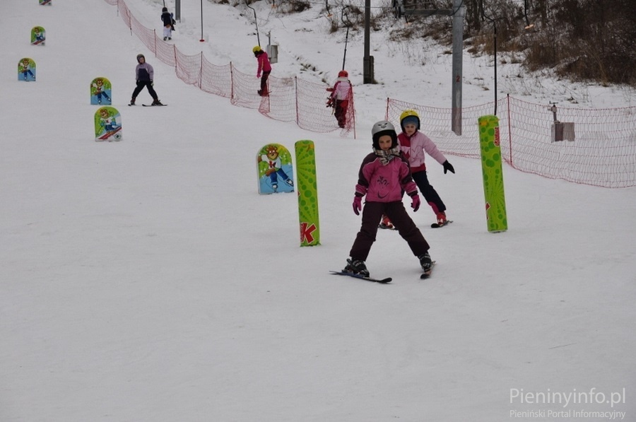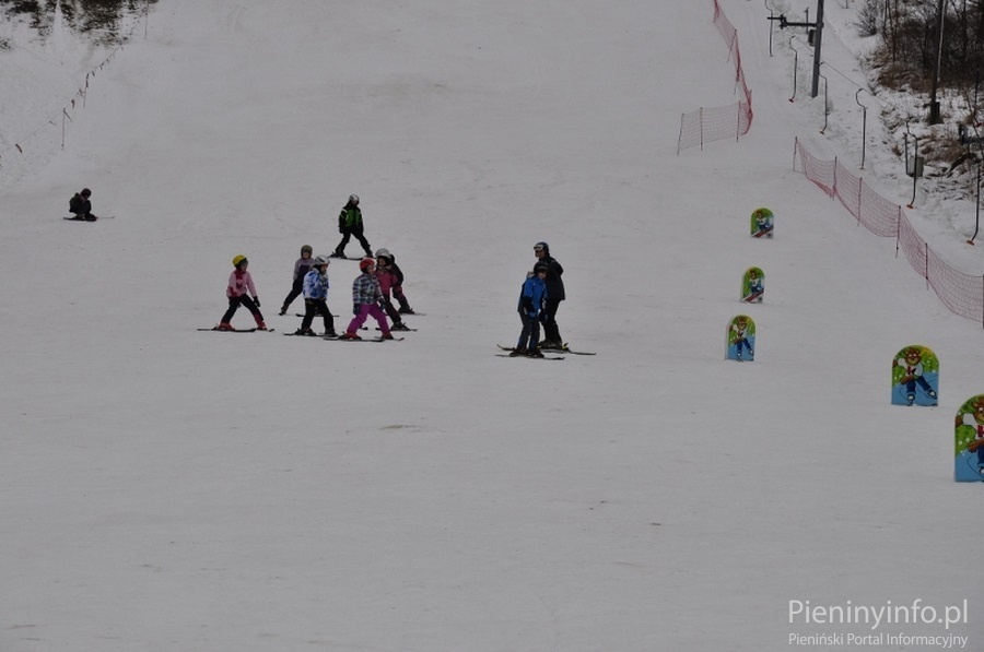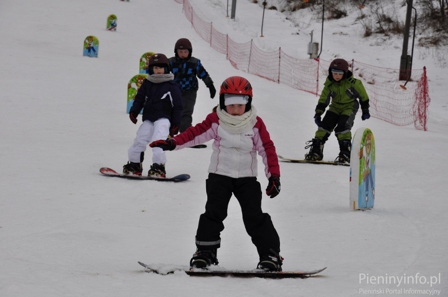 Ponad 80 uczniów szkół podstawowych i gimnazjum z gminy Krościenko n/D doskonali swoje umiejętności jazdy na nartach lub snowboardzie pod okiem instruktorów.