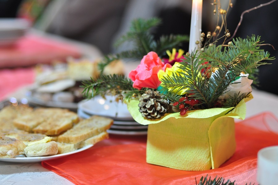 Po wspólnej modlitwie pod przewodnictwem proboszcza parafii ks. Mieczysław Szlaga i poświęceniu opłatków wszyscy składali sobie najlepsze życzenia, by za chwilę zasiąść do wspólnej kolacji. Panie z Koła Gospodyń Wiejskich przygotowały na tę okazję zupę grzybową z łazankami, chleb ze smalcem, podpłomyki oraz domowe wypieki.